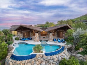 The roughly 9,500-square-foot estate has six cottages, each with a private plunge pool, outdoor shower, en suite bathroom, sitting area and kitchenette, said Colthart. A seventh building has shared spaces including a great room, dining room, two kitchens and two offices. There are also outdoor living and dining areas as well as a fire pit and an infinity pool.