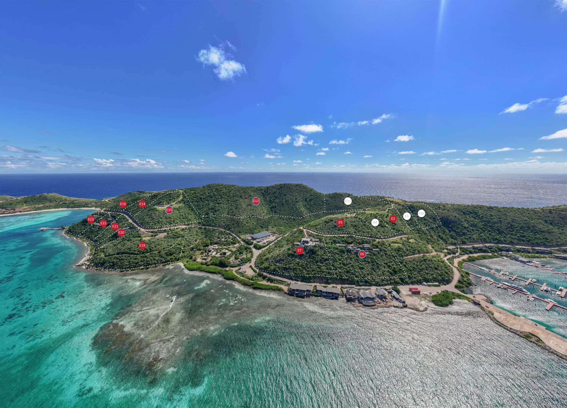 - Elevated 500 feet above sea level giving privacy and exceptional views of Necker Island, Eustatia Island, Anegada and Caribbean Reefs