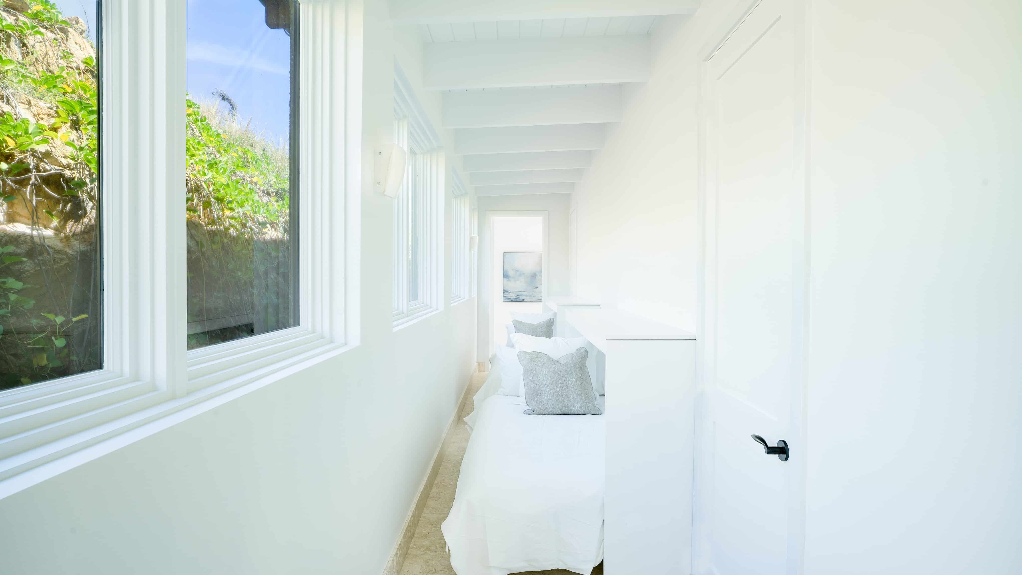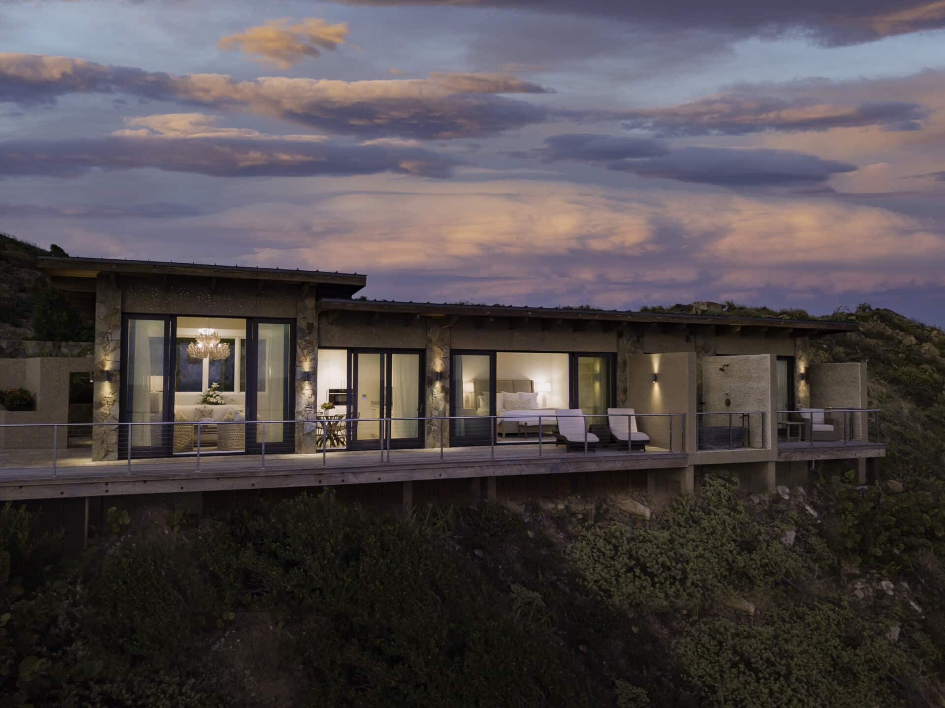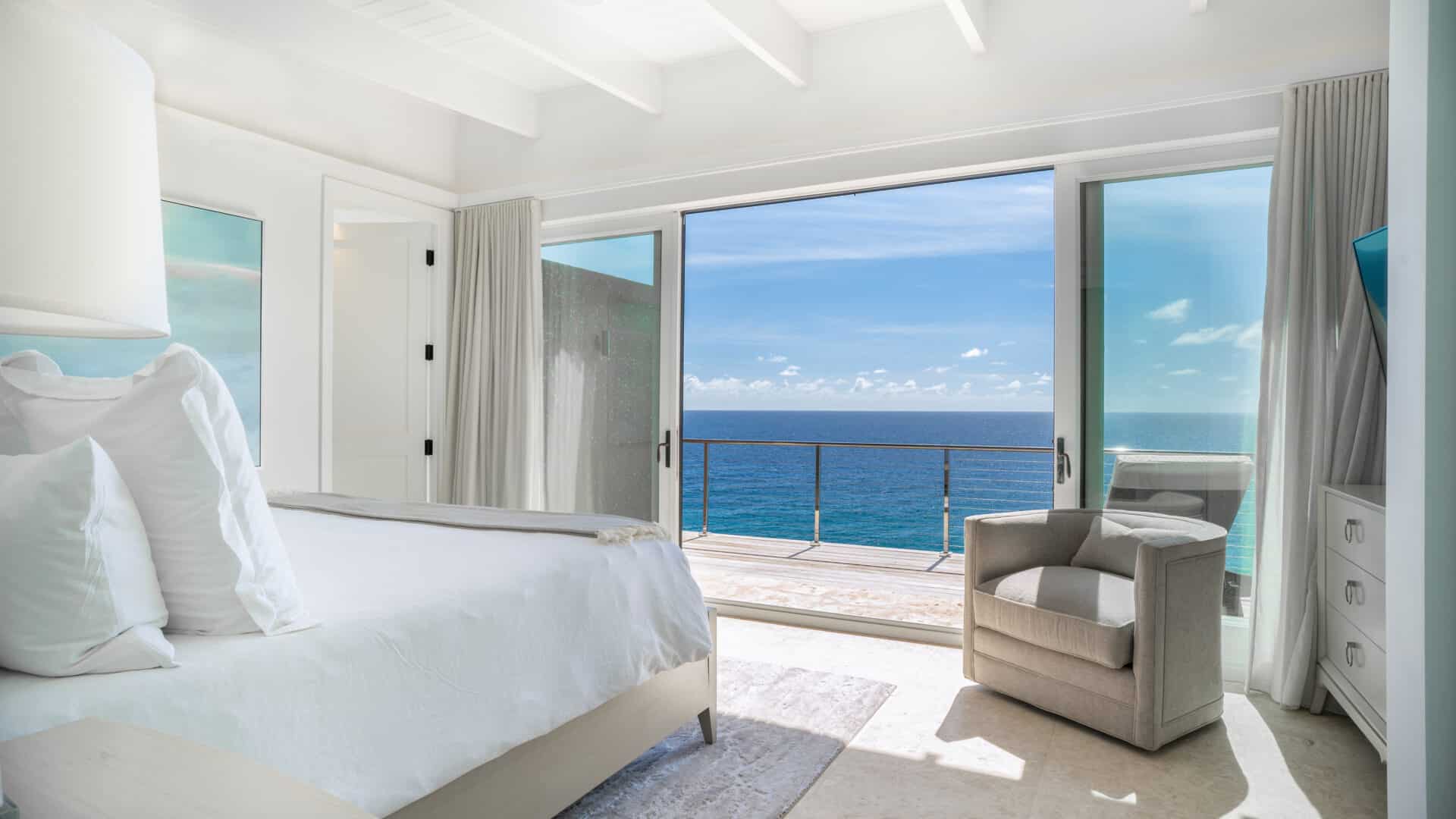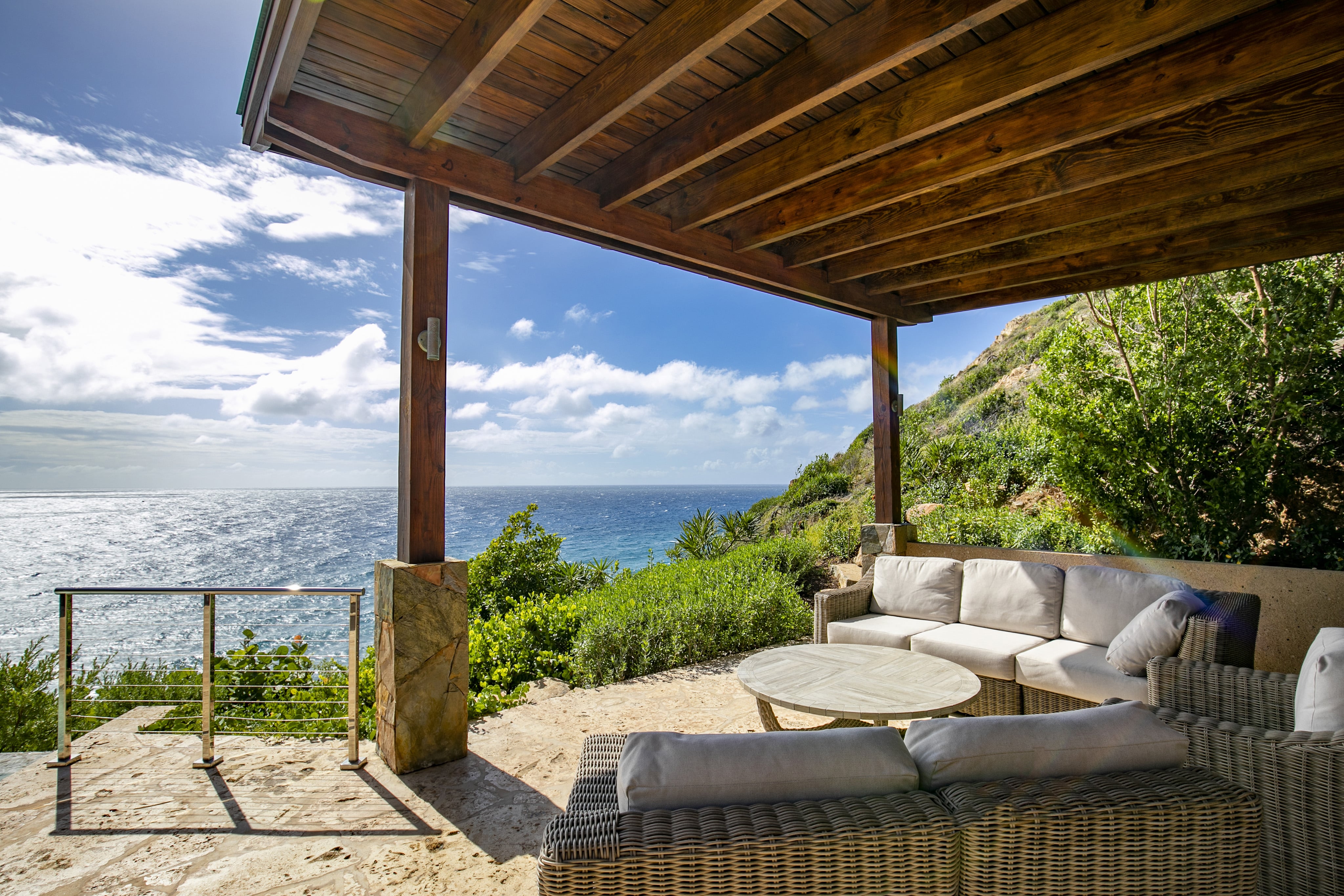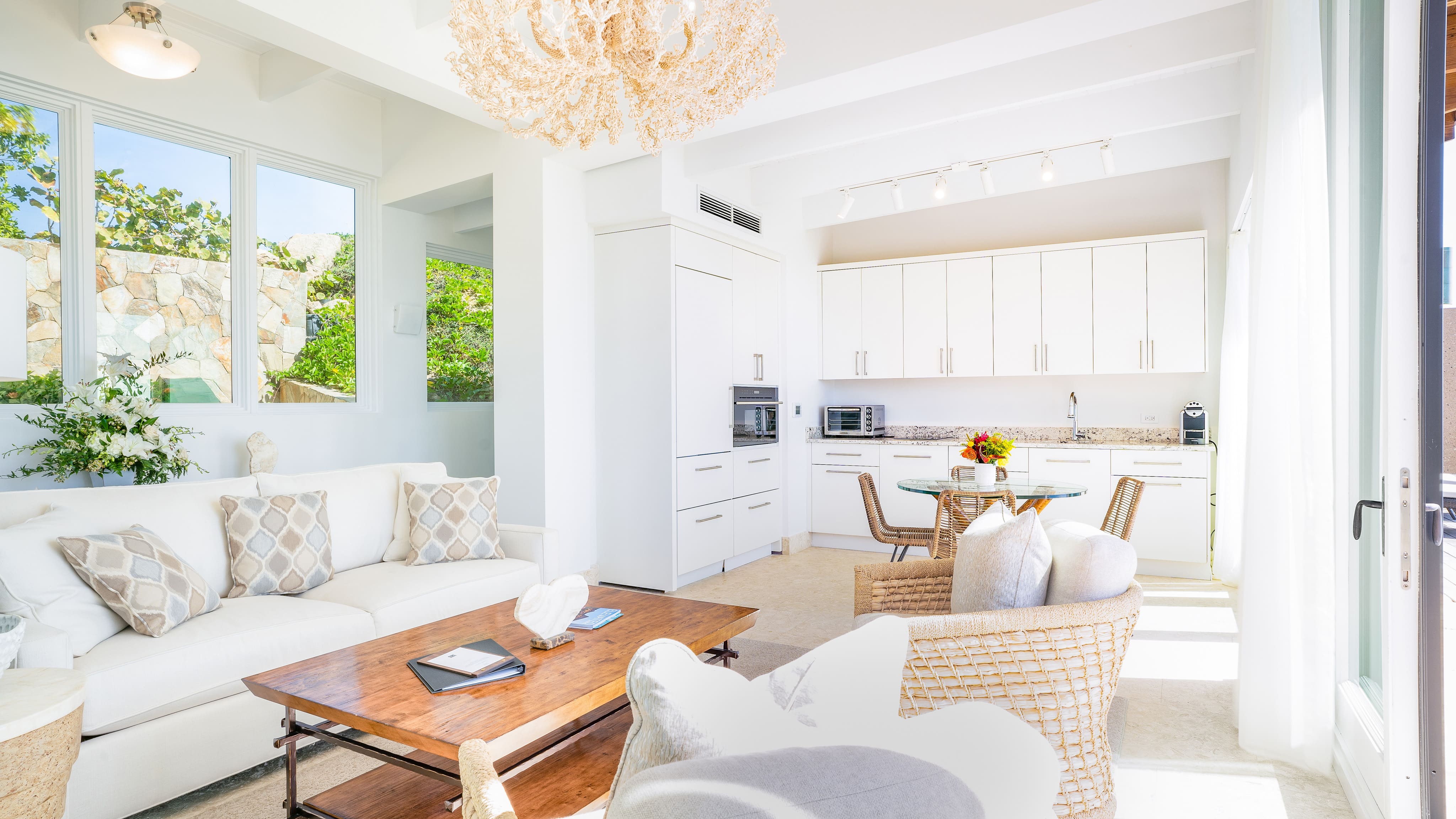 Overhanging the ocean on the southern ridge of Oil Nut Bay, Sol Mate Villa opens up to a full 180-degree view of the Caribbean Sea. As one of our most exclusive two-bedroom British Virgin Islands rentals, it is the epitome of simple island elegance. Clad in beautiful native stone, the vacation villa’s natural color palette allows it to blend seamlessly into the landscape. Soft tropical light streams through floor-to-ceiling glass doors that run the length of the home, and the cool ocean breeze carries with it the soothing sounds of the breaking waves beneath.
