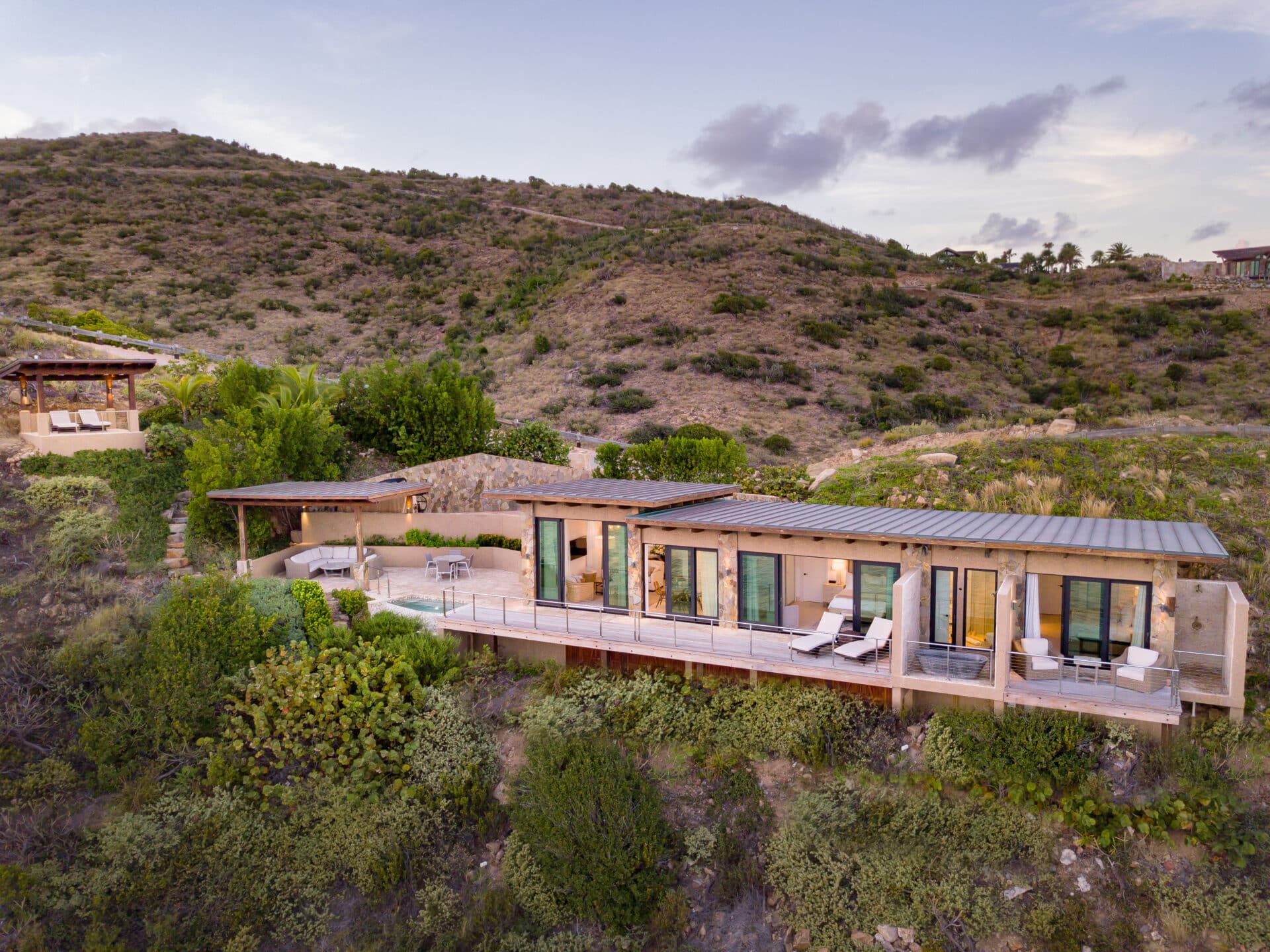Wrap yourself in luxury while staying in this beautiful vacation home featuring two exquisite primary bedrooms, ensuite bathrooms, and private patios. Two twin Murphy beds fold down to make this villa ideal for families with children. This graceful villa boasts an open living area with a fully equipped kitchen. Enjoy the plunge pool on the spacious terrace while the tide turns beneath you, or climb the natural stone path and take in the sunset from the elevated deck perfect for whale watching. Our British Virgin Islands rentals are all about the splendor of the ocean and the casual-chic Caribbean lifestyle.