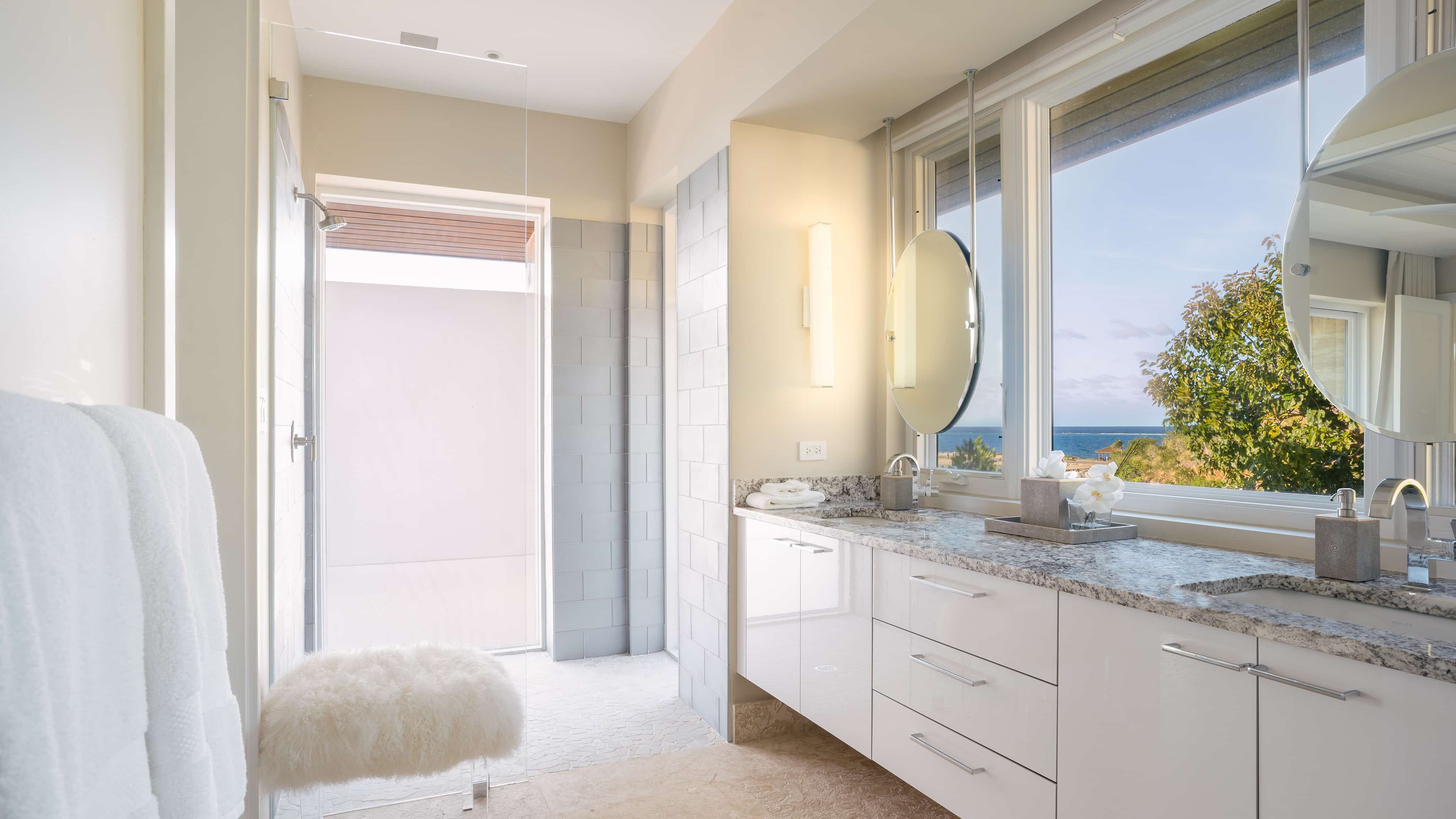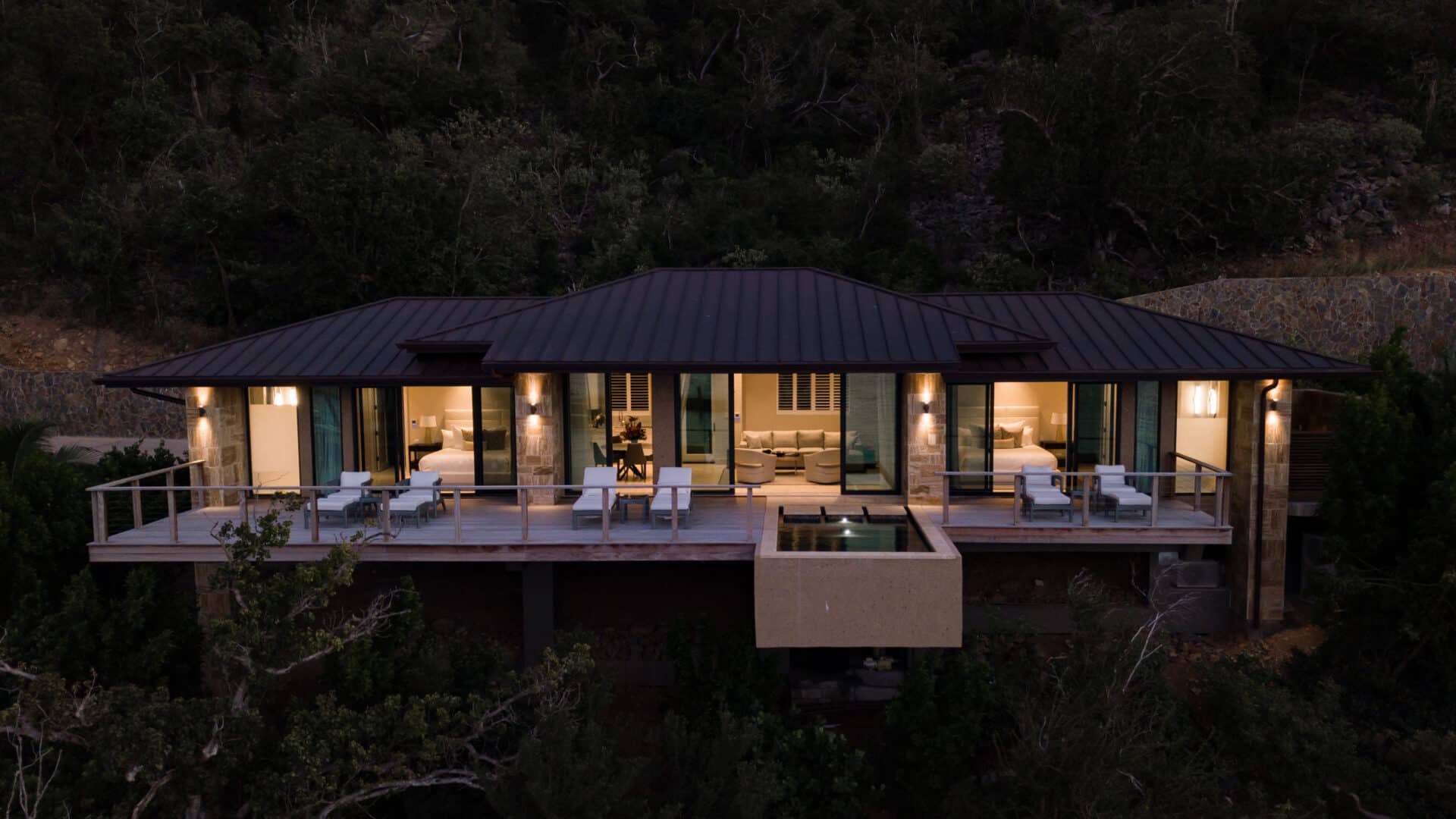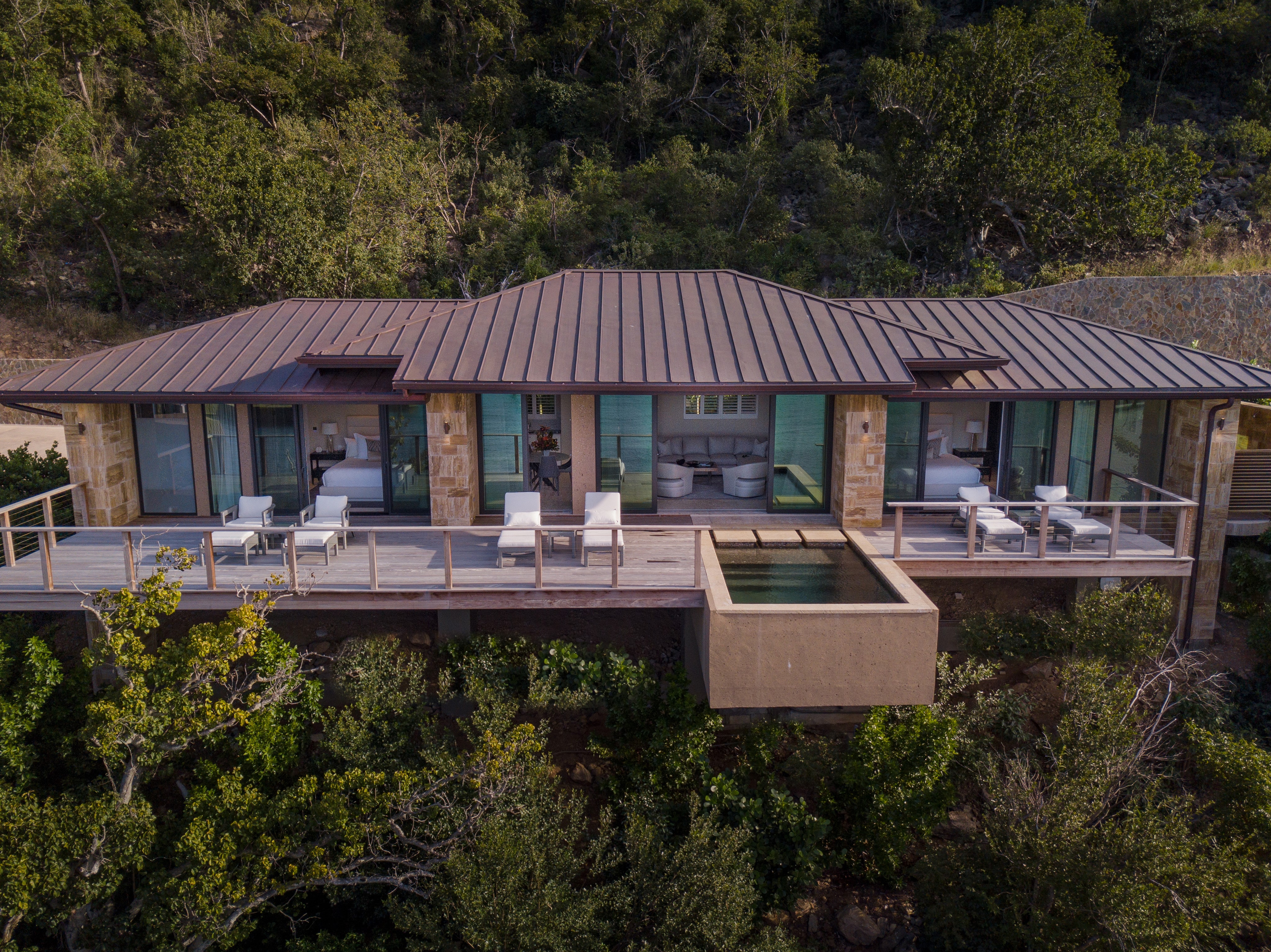 Experience luxury living with breathtaking views in this contemporary BVI rental villa. Enjoy sweeping views of Deep Bay, Eustatia Sound, and Oil Nut Bay’s Marina from the comfort of your own home. The open living concept features floor-to-ceiling glass doors that lead to a spacious deck and a sparkling plunge pool. Twin primary suites, each with their own luxurious bathroom, flank the great room and kitchen. This property offers the perfect blend of modern design and natural beauty.