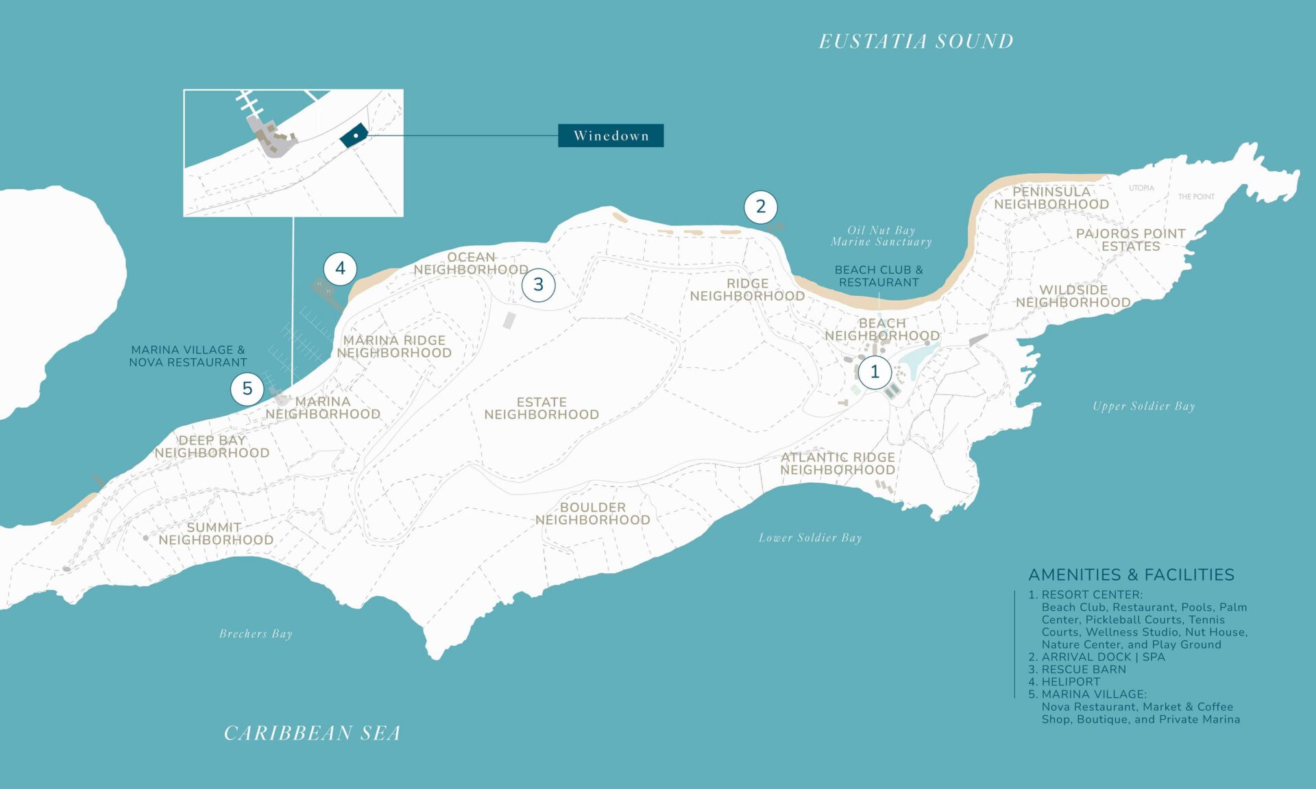 Winedown Villa is walking distance from Oil Nut Bay’s Marina Village where you can enjoy the convenience of a coffee shop, fashion boutique, provisioning market, and ONB’s signature restaurant Nova. The Beach Club and popular amenities are just a short 7 minute golf cart ride away.